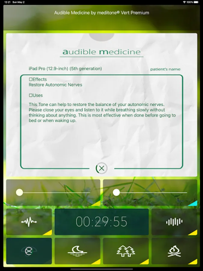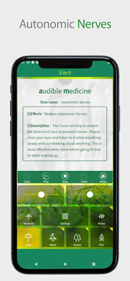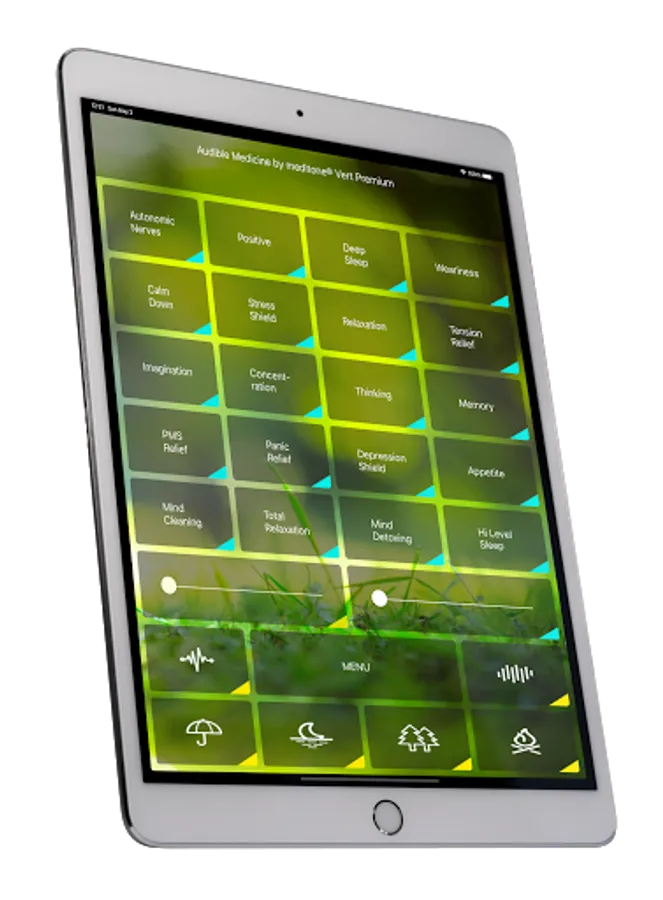 To produce the recorded sounds (referred to hereafter as Tones), we analyzed each and every aspect of classical music that has been recognized as effective in music therapy, then synthesized it using unique technology. In addition, all Tones are played automatically by a computer program.