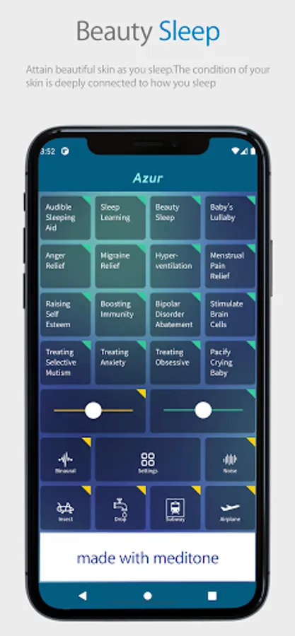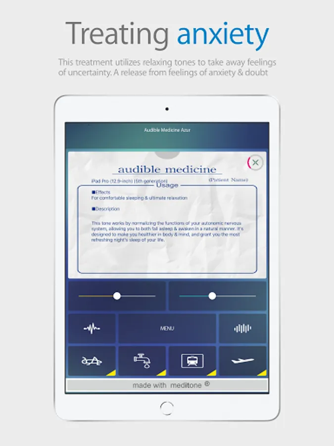 To produce the recorded sounds (referred to hereafter as Tones), we analyzed each and every aspect of classical music that has been recognized as effective in music therapy, then synthesized it using unique technology. In addition, all Tones are played automatically by a computer program.