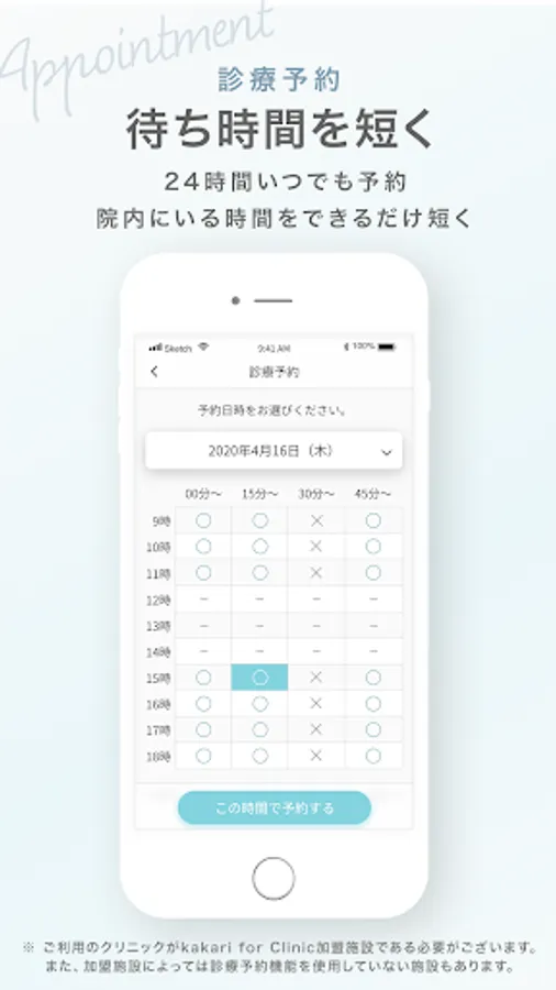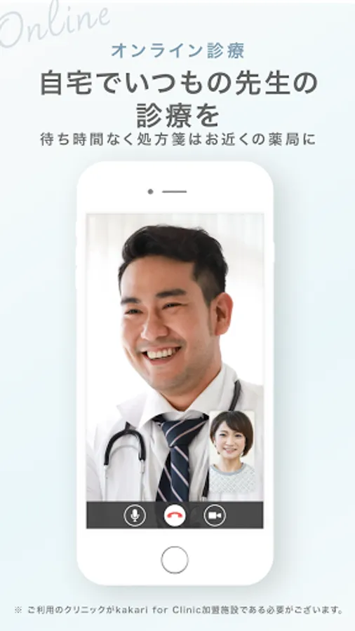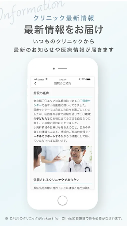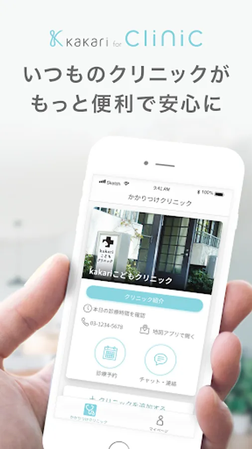 "kakari for Clinic" is an app that allows you to use your usual clinic more conveniently and safely.