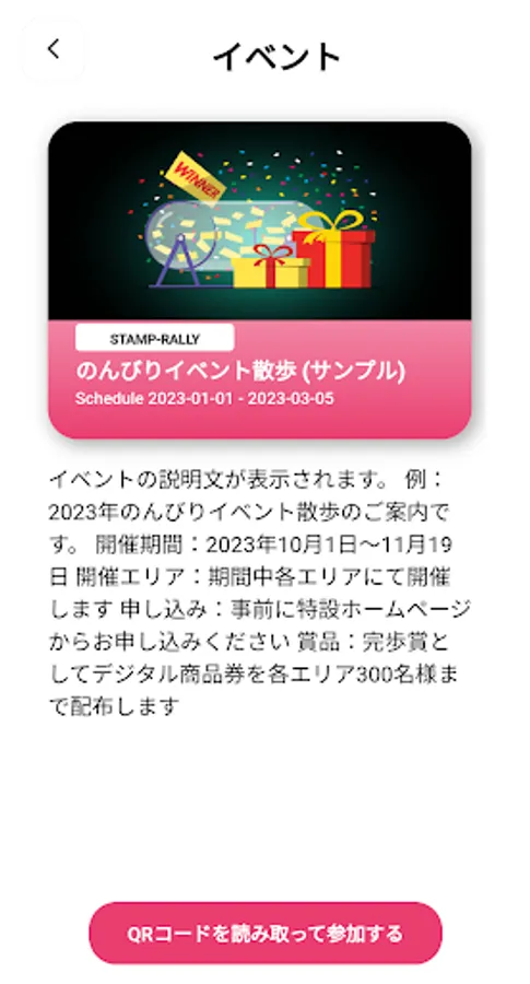 App provides several stamp and quiz rallies. Once you complete a specific course of the rally, you will receive a digital coupon.