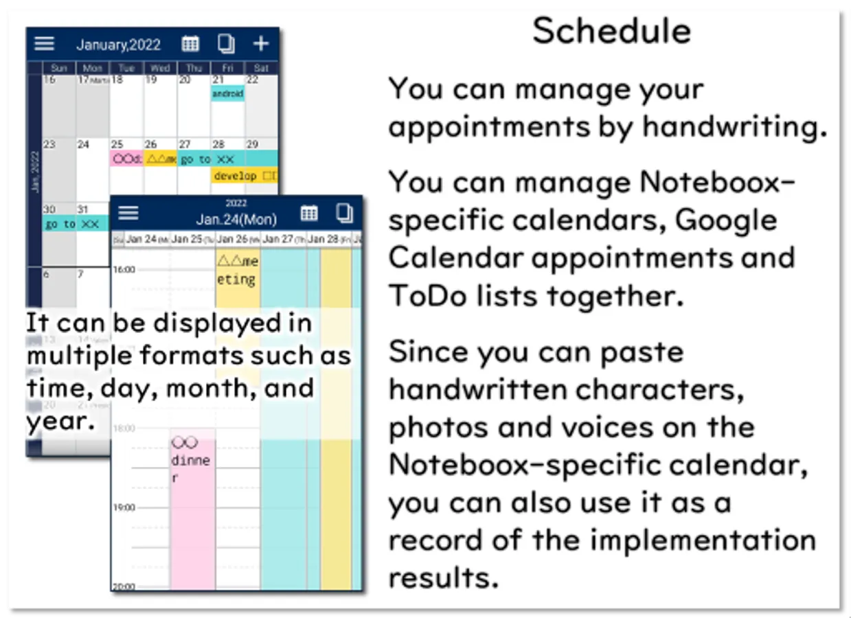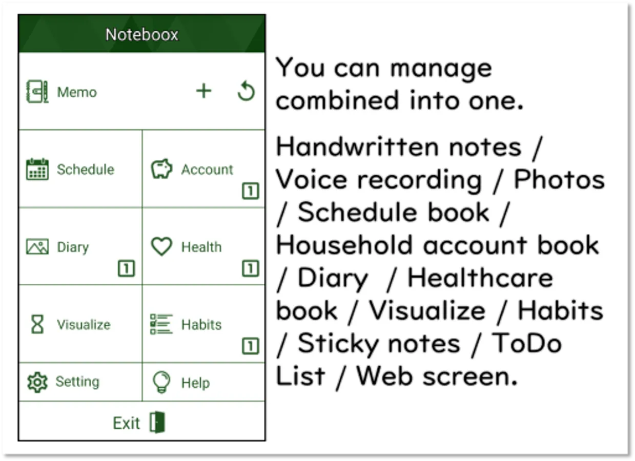 You can manage handwritten memos, recordings, schedule books, household accounts, health notebooks, confirmation tables, diary books, sticky notes, to-do lists, visualization, assignment tables, matrix tables, planning tables, web screen records, etc. all together. ..