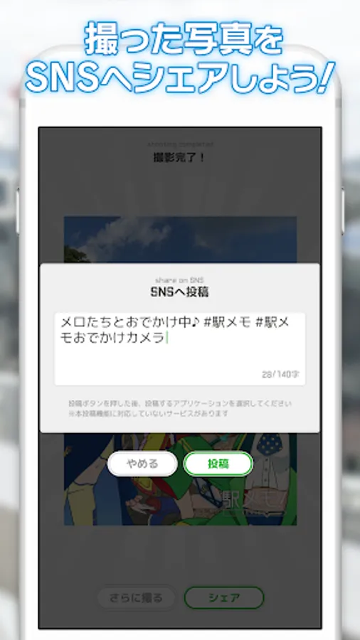 "Station memo! Odekake Camera” is a station memo! It is a camera app that allows you to take pictures with the partners "Denko" that appear in the game.