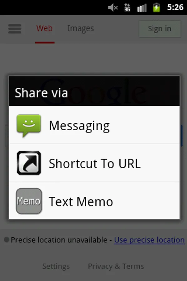 2. Opens this app from Menu→More→Share page→Share via→"Shortcut To URL". URL will be filled automatically.