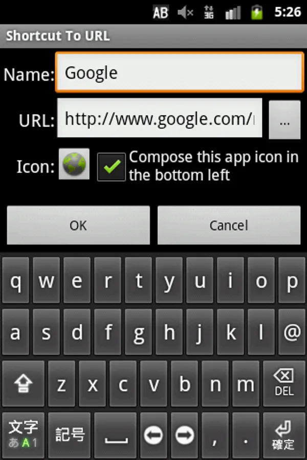 3. Shortcut will be created on the home by inputting "Name" and pressing "OK" button.
