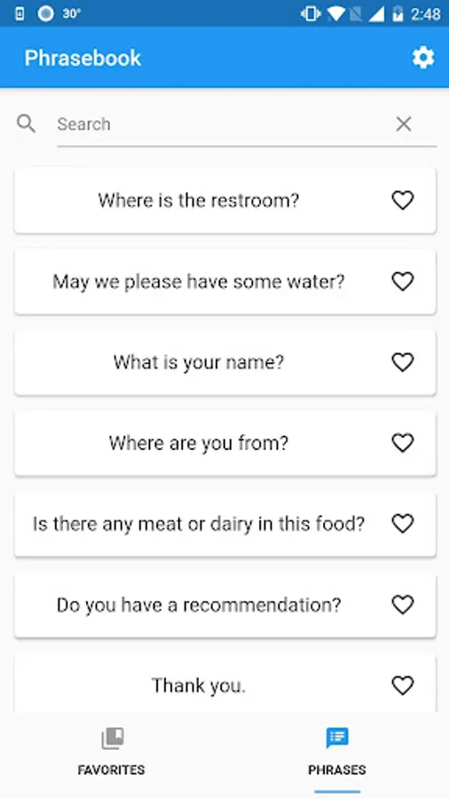 Traveling Japan and need to ask some questions? This app helps you do that. Find phrases you plan to use, then display them in an easy-to-read card whenever you need it.