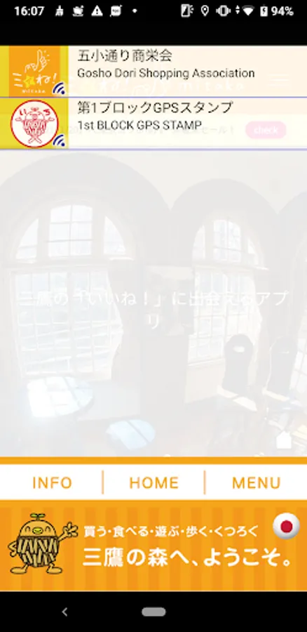 When you walk around Mitaka, the information of the shops and shops on the spot is automatically displayed as a list by GPS or beacon, and you can display it on the screen by tapping the list of information you want to see.