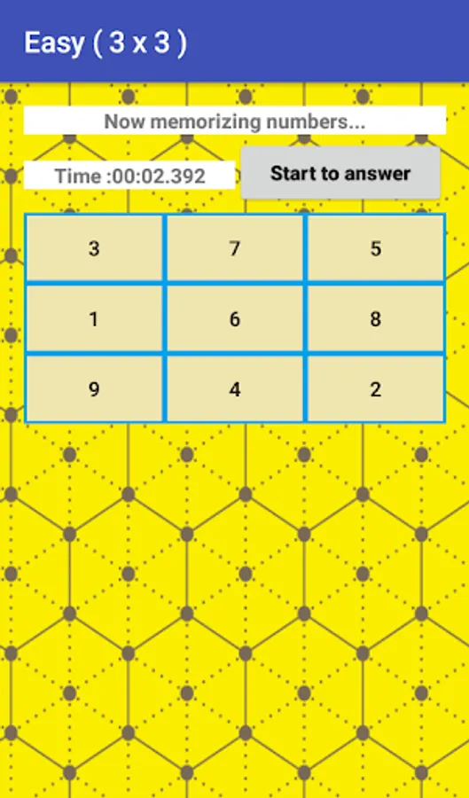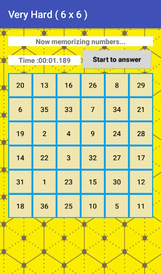 1.Touch Start button after memorize numbers which are displayed on panels.