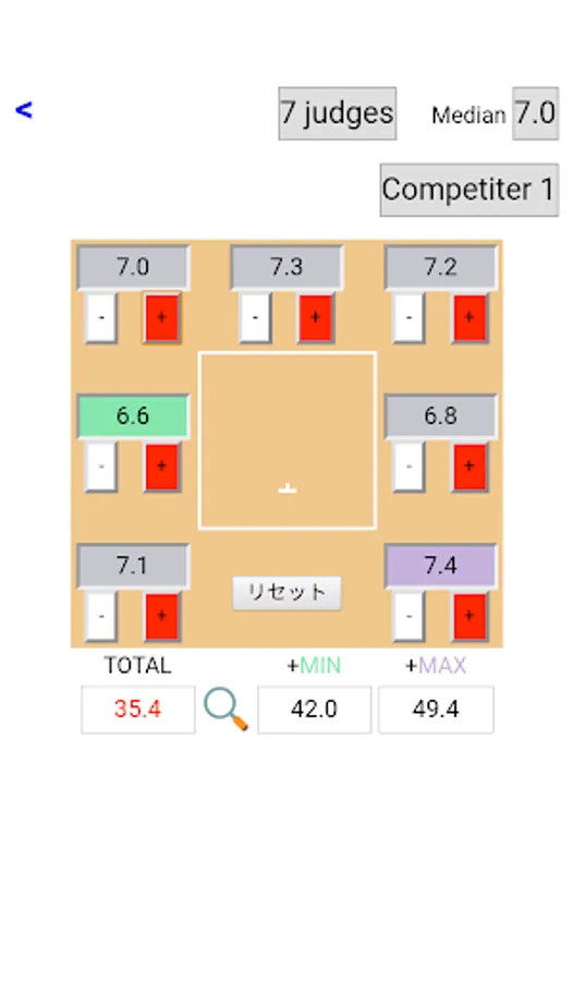 The score calculator calculates the total score automatically excepting the maximum and minimum for Kata events, so that you need not calculate manually.