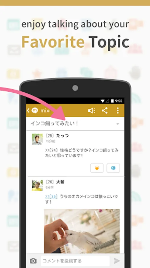 Through various types of communities such as music, games, actors, everyone can get excited talking about their favorite topics!