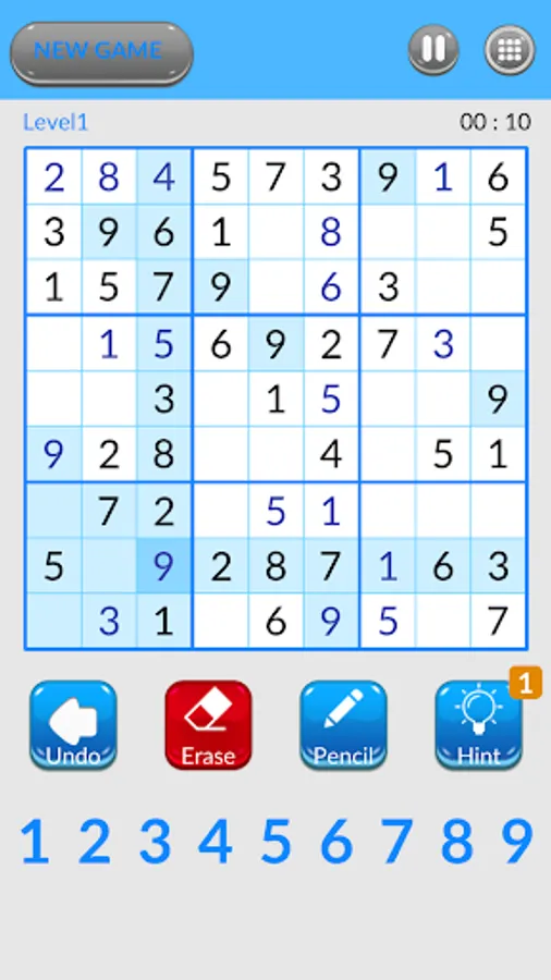 ・ Highlighting function of duplicate numbers for columns, rows and blocks