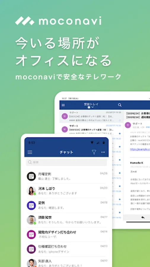 As a moconavi original function that does not require a linked service, it comes standard with a phonebook/business chat that can be displayed hierarchically.
