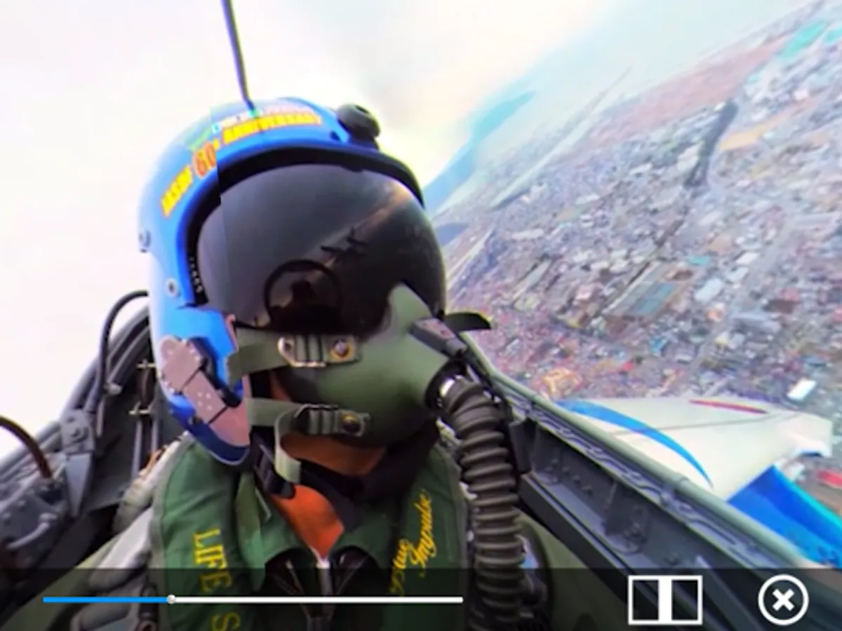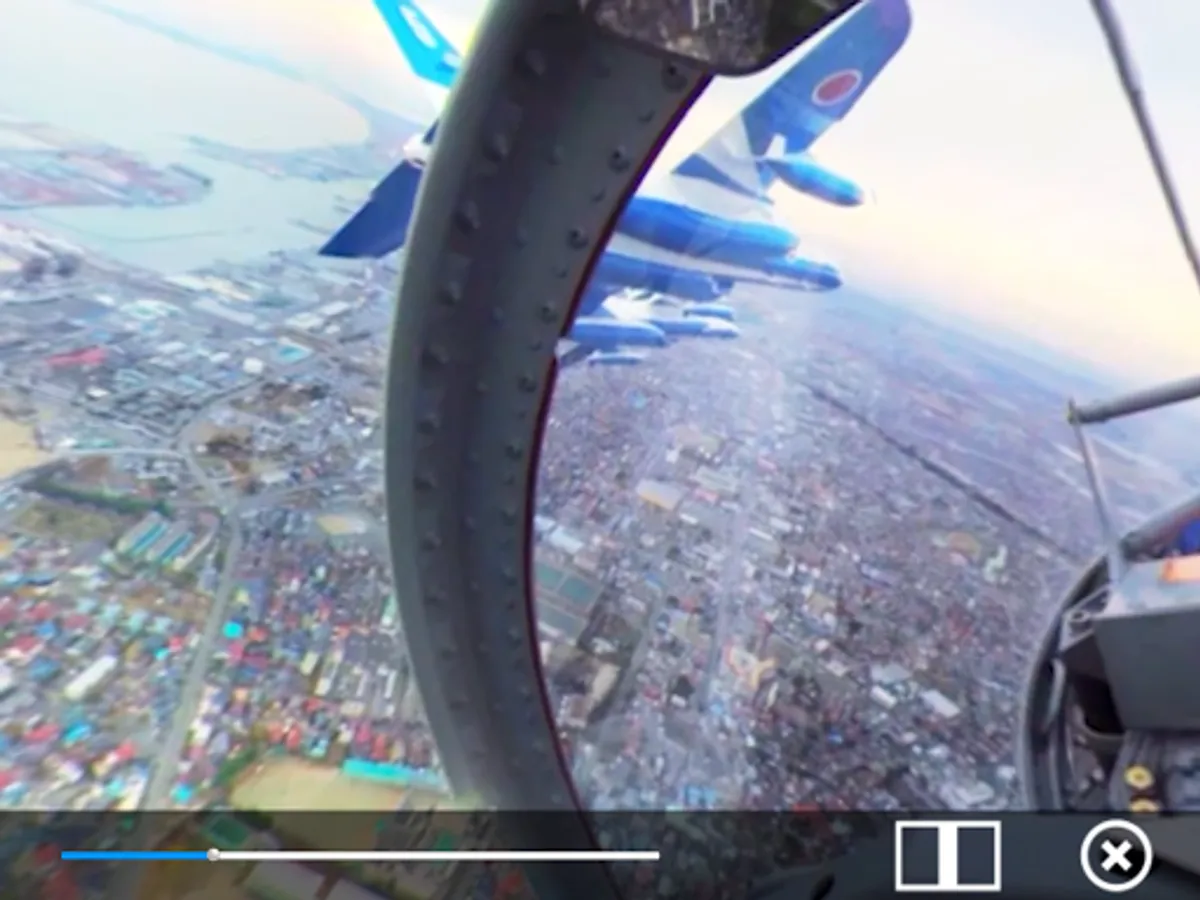 Use the "idoga" omnidirectional panoramic video engine overlooking 360 ° in this app, you will be able to virtually experience the brilliant acrobatic flight from the cockpit of the Blue Impulse.