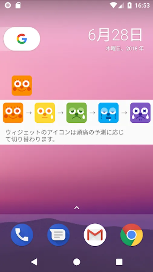 If you set the region and estimated time in the widget settings, the widget will display the headache prediction as an icon.