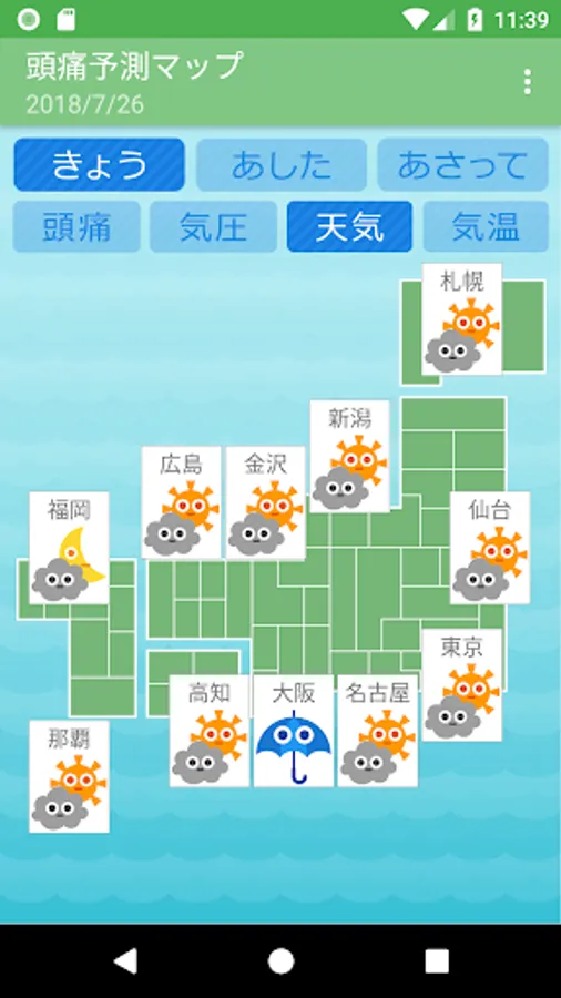 If you want to check the headache predictions nationwide, display the headache predictions nationwide on a map from the widget icon.