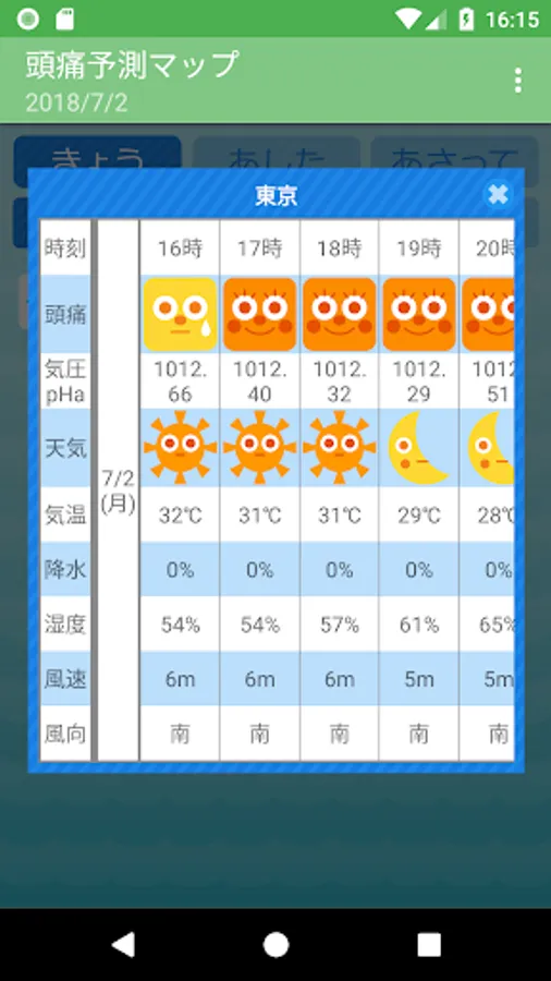 The headache prediction map shows daily predictions instead of hourly predictions.