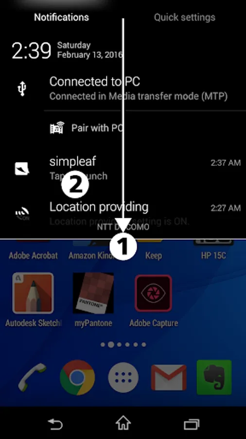 For example, when you want to make a note while web browsing or making phone calls, you simply swipe down the status bar and launch Simpleaf.