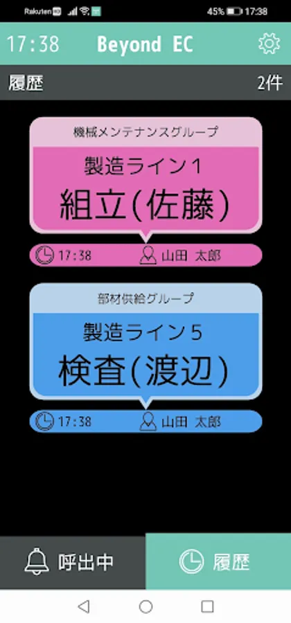 ・ If you press the "History" button at the bottom of the main screen, the history of the deleted call frame will be displayed.