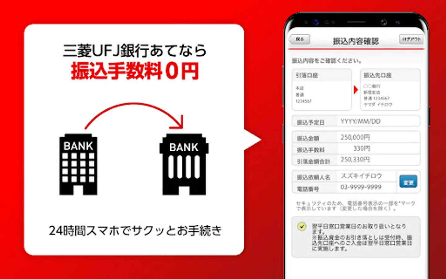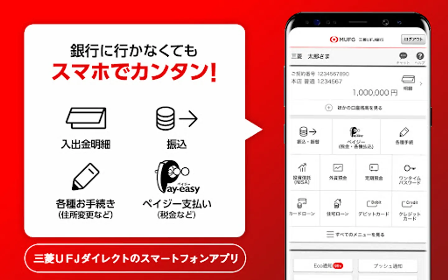 It is a smartphone application of Internet banking (Mitsubishi UFJ Direct) provided by Mitsubishi UFJ Bank.