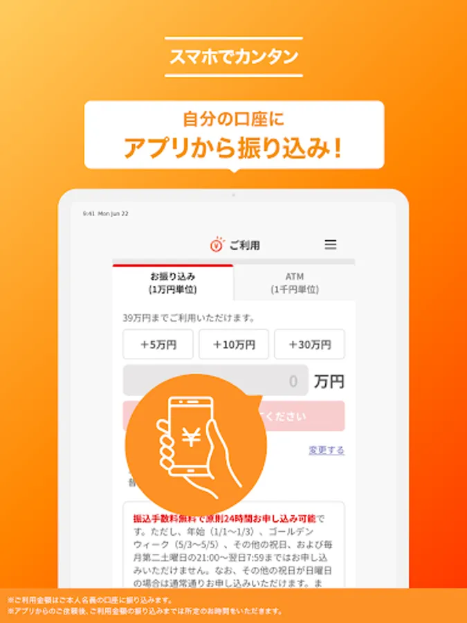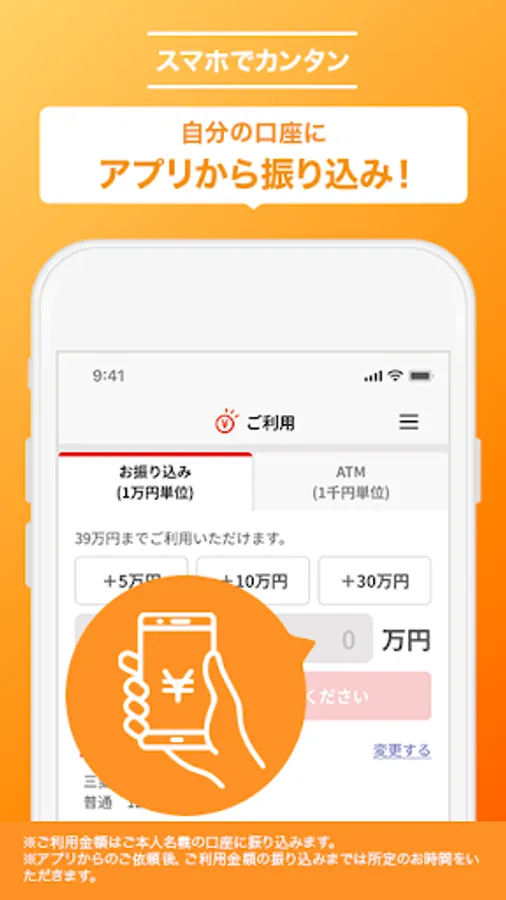 By applying for this app, website, or by phone, the borrowed money will be transferred to a savings account in the name of the person under the name of "Gohonnin". There is no transfer fee.
