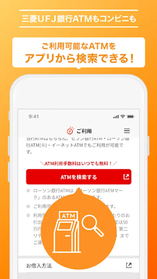 In addition to ATMs at Mitsubishi UFJ Bank, you can easily borrow and repay at Seven Bank ATMs, Lawson Bank ATMs, and E-net ATMs.