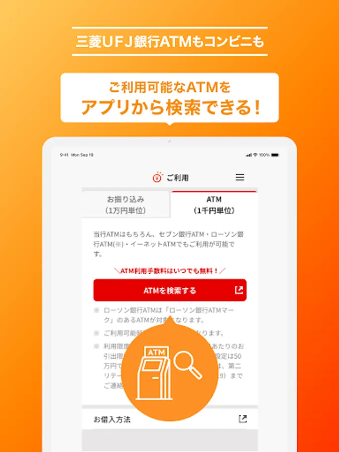 [1] ATM usage fees and overtime usage fees for Mitsubishi UFJ Bank ATMs and affiliated convenience store ATMs are all free when using a Banquick Card!