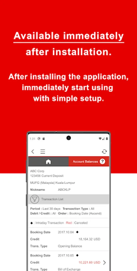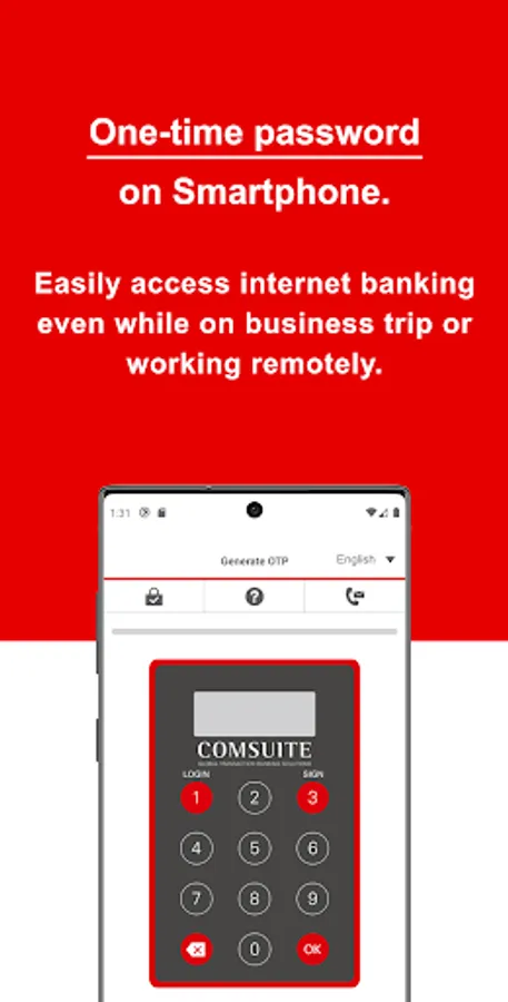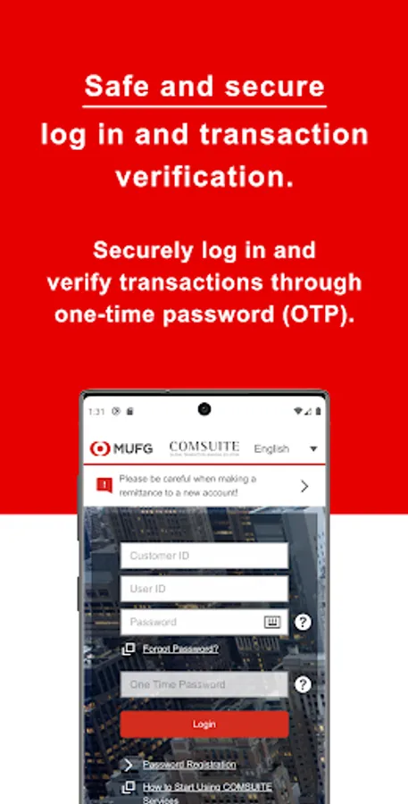 MUFG Bank's One-time-password (OTP) application for global internet banking service “COMSUITE”.
