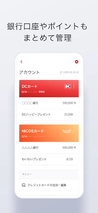 ◆ Collectively manage bank accounts and points