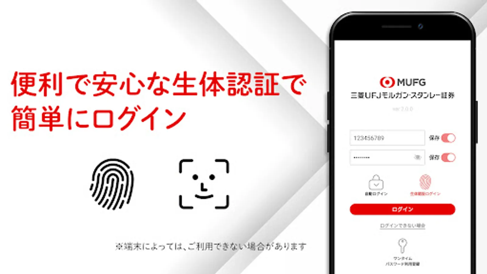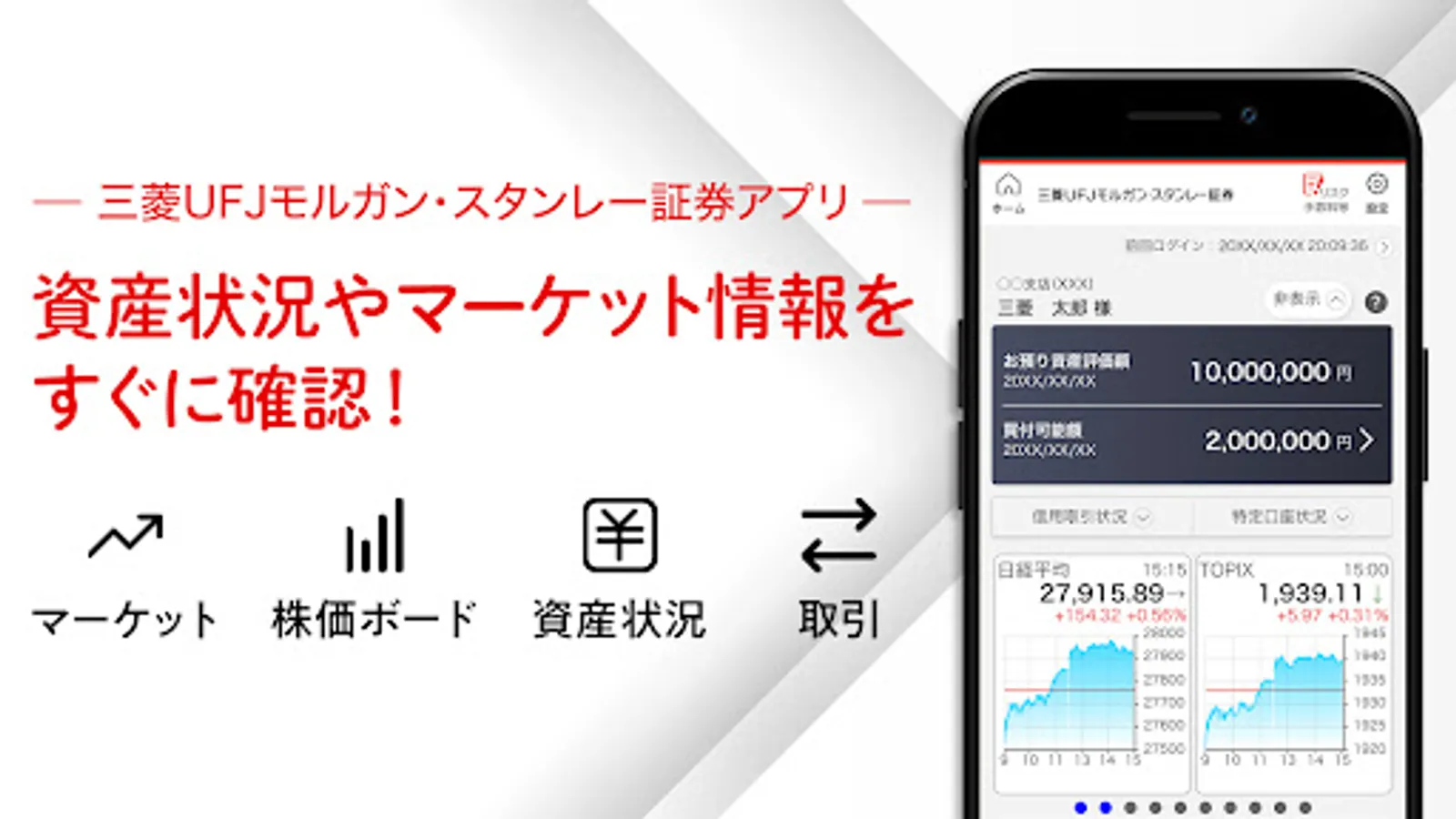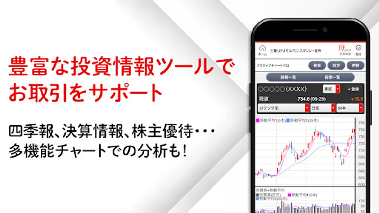 This is an official smartphone app exclusively for account holders provided by Mitsubishi UFJ Morgan Stanley Securities.