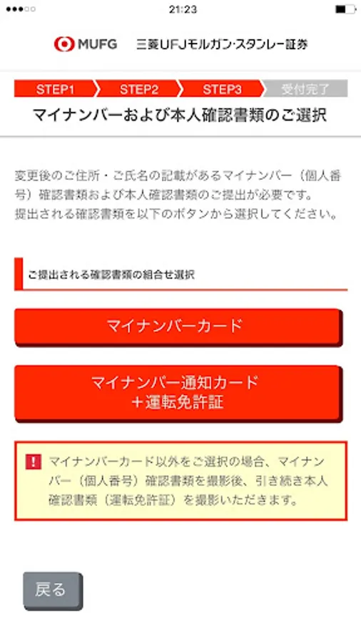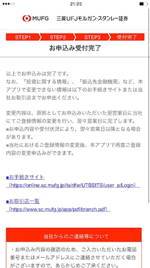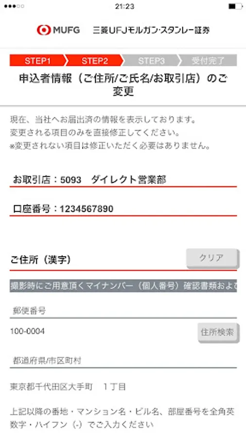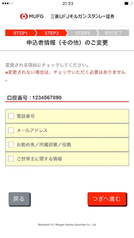 This is a "registration change application" provided by Mitsubishi UFJ Morgan Stanley Securities.