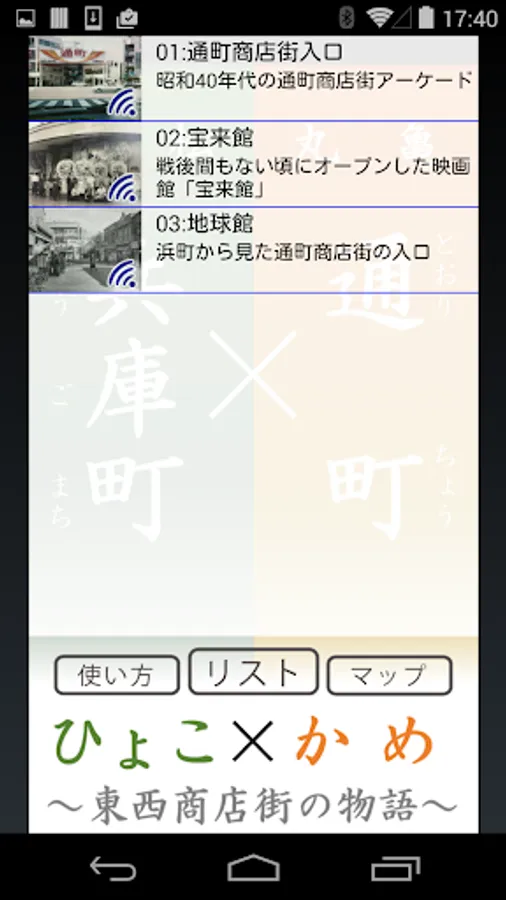 「高松兵庫町商店街」では、商店街を歩くと、商店街内に設置したビーコンからの電波を次々にキャッチして、お店の歴史などの紹介、おすすめ商品・メニューなどを得ることができます。また、近隣のおすすめプチ観光スポットも紹介しています。