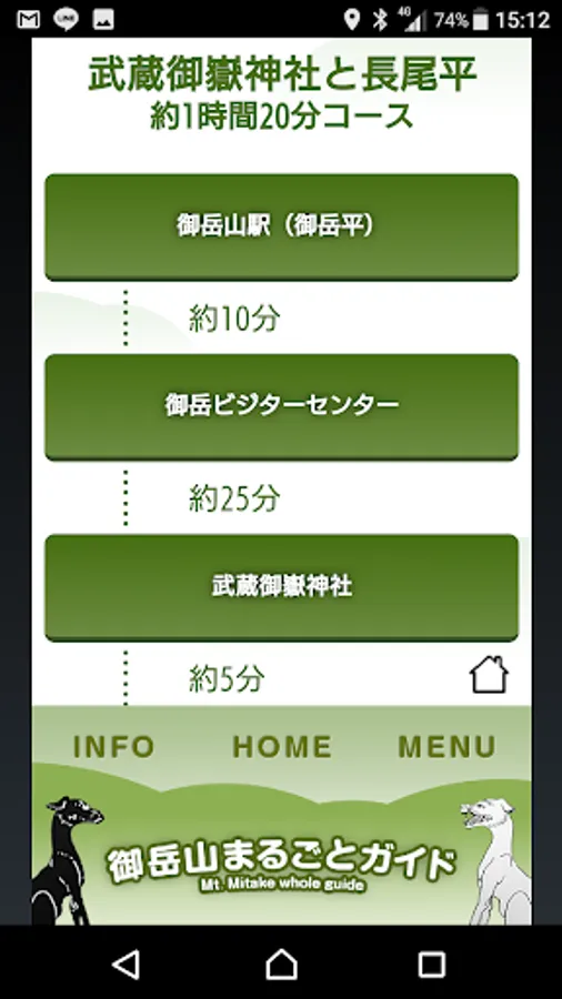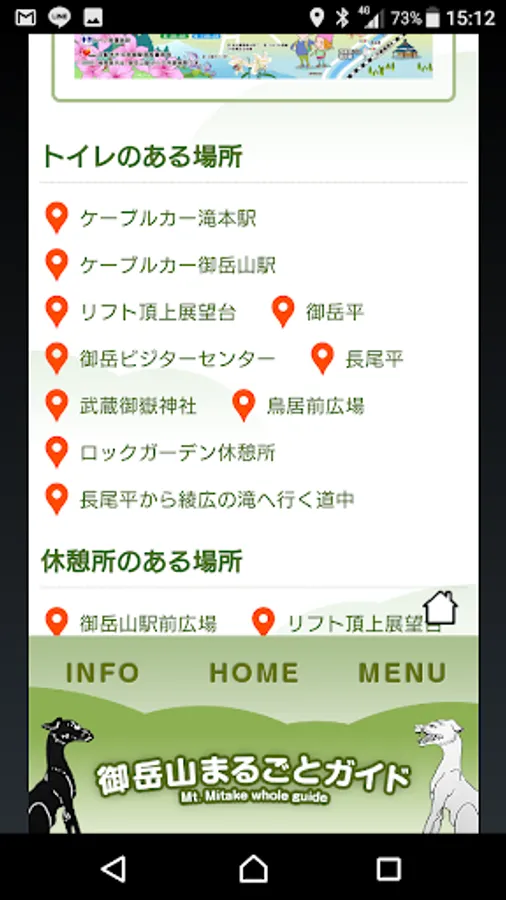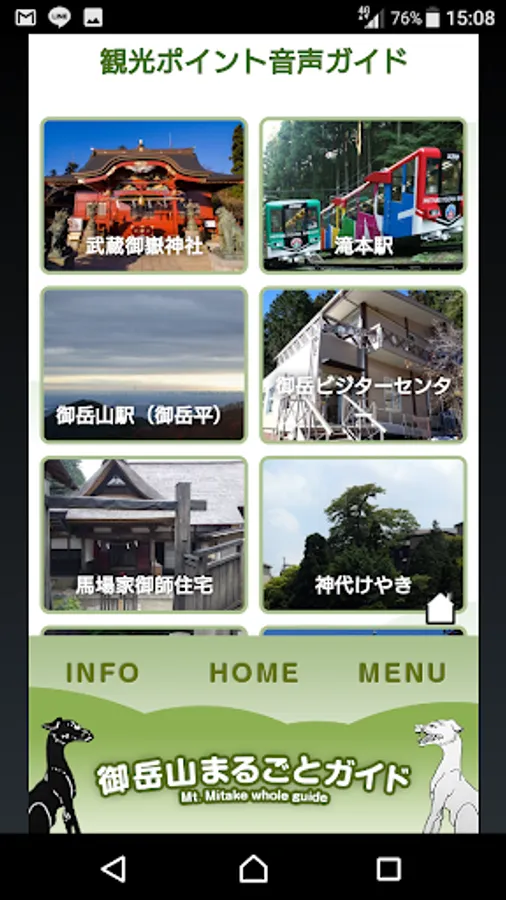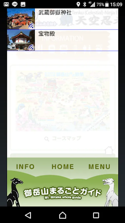 3.御岳山内の観光ポイントの近くでガイドを起動すると、一覧表示画面にスポットが表示されます。
