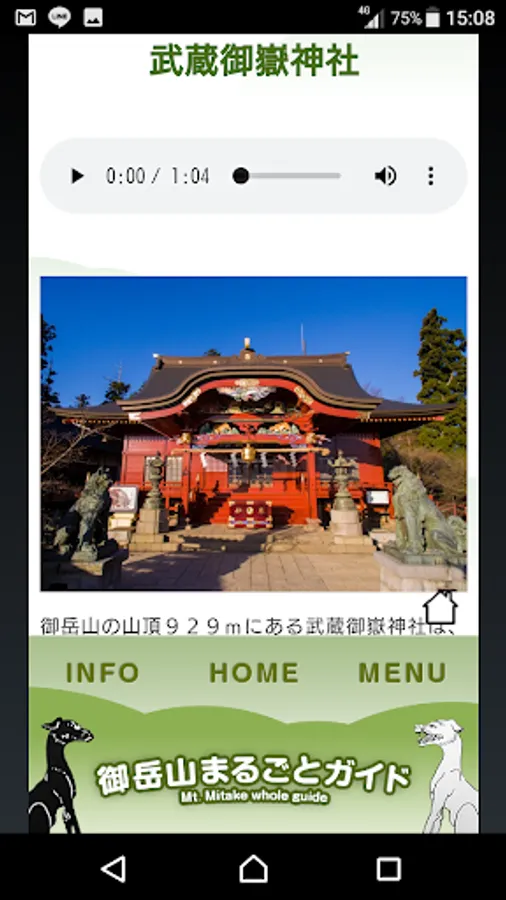 This app "Mt.Mitake whole guide"(mitakesan Voice guide) be enjoyed like an audio guide for art museums and museums.