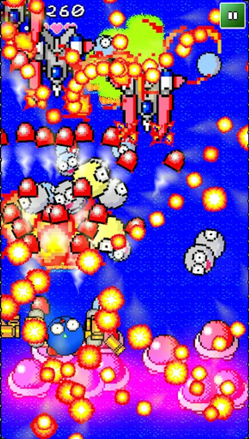 Collect the weapons that appear when you destroy present boxes! They change the bullets shot from your character. Choose from various weapons to suit the situation. Some strong enemies can be easily defeated by switching weapons. Just a quick heads up - all weapons are disposable.