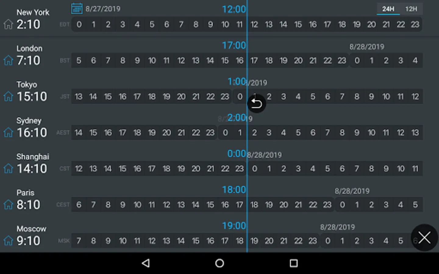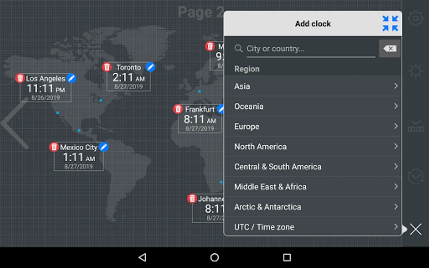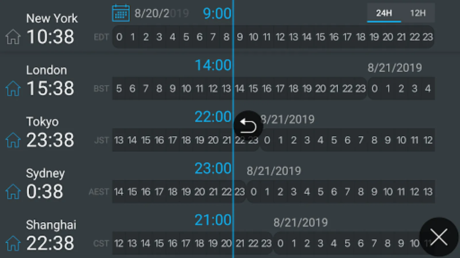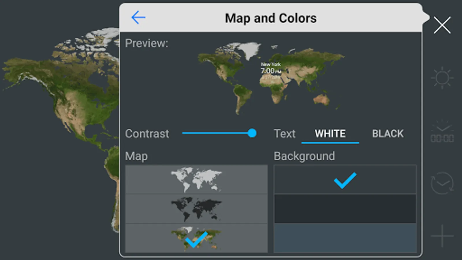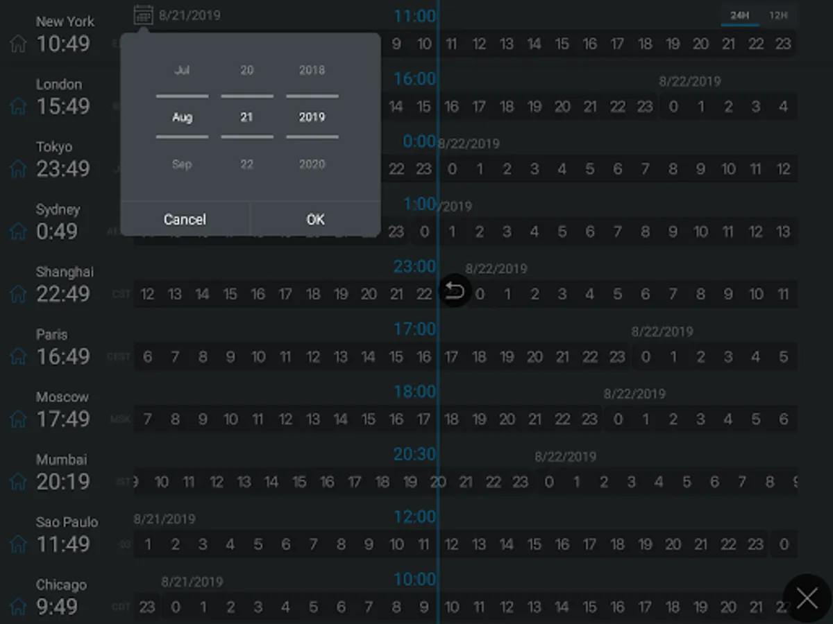 map:clock allows you to keep track of current time for major cities and time zones on a world map.