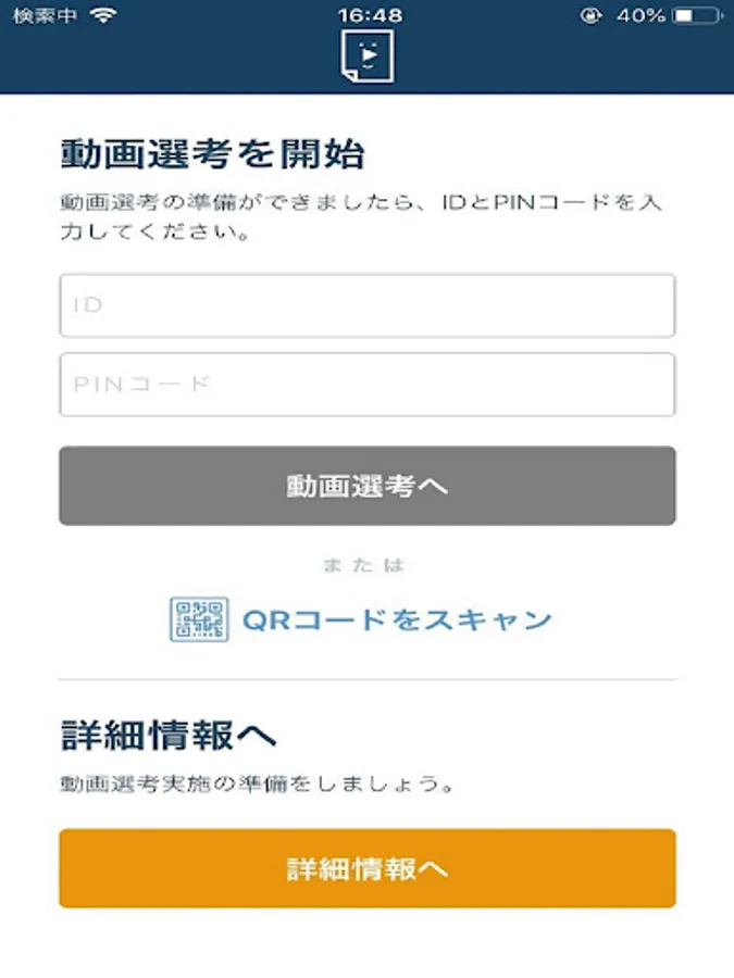 It is an application for applicants who received an invitation to a recording interview from a company using "MY VIDEO PR". To get started, download the app and open an invitation email to the recording interview. Enter the ID and PIN code described in the email, or scan the QR code attached to the email.