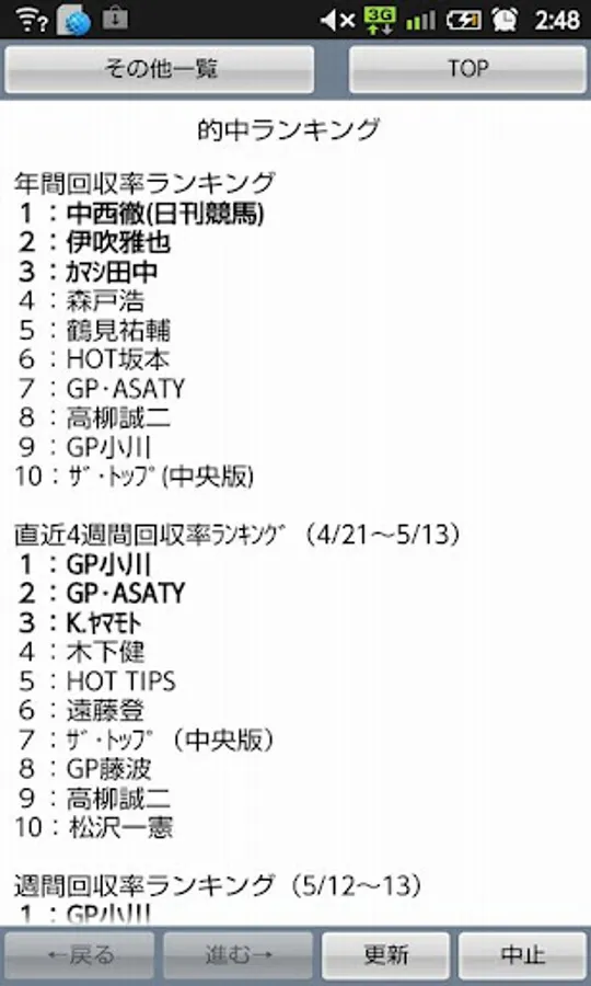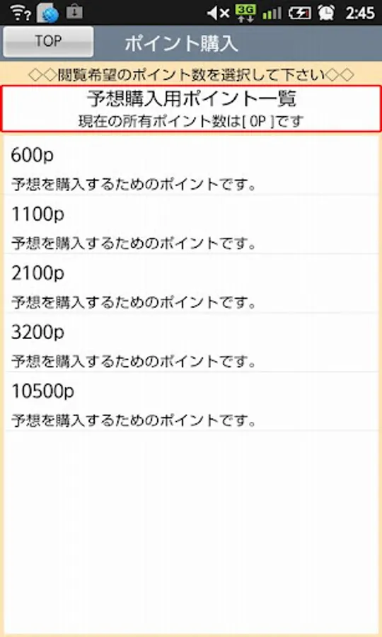 ・アプリ内でポイントを購入し、そのポイントと交換して各予想家の予想を閲覧できる仕組みになっています。