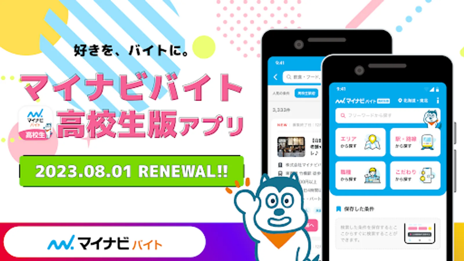 My Navi Baito High School Edition is the classic app for high school students looking for part-time jobs! It is an application that allows you to search for the perfect part-time job for you from part-time job information welcomed by high school students.