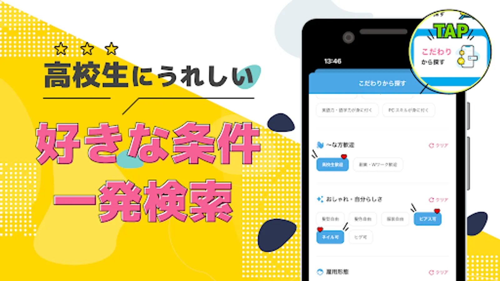 It is a recruitment app that only posts jobs that high school students can work with peace of mind.