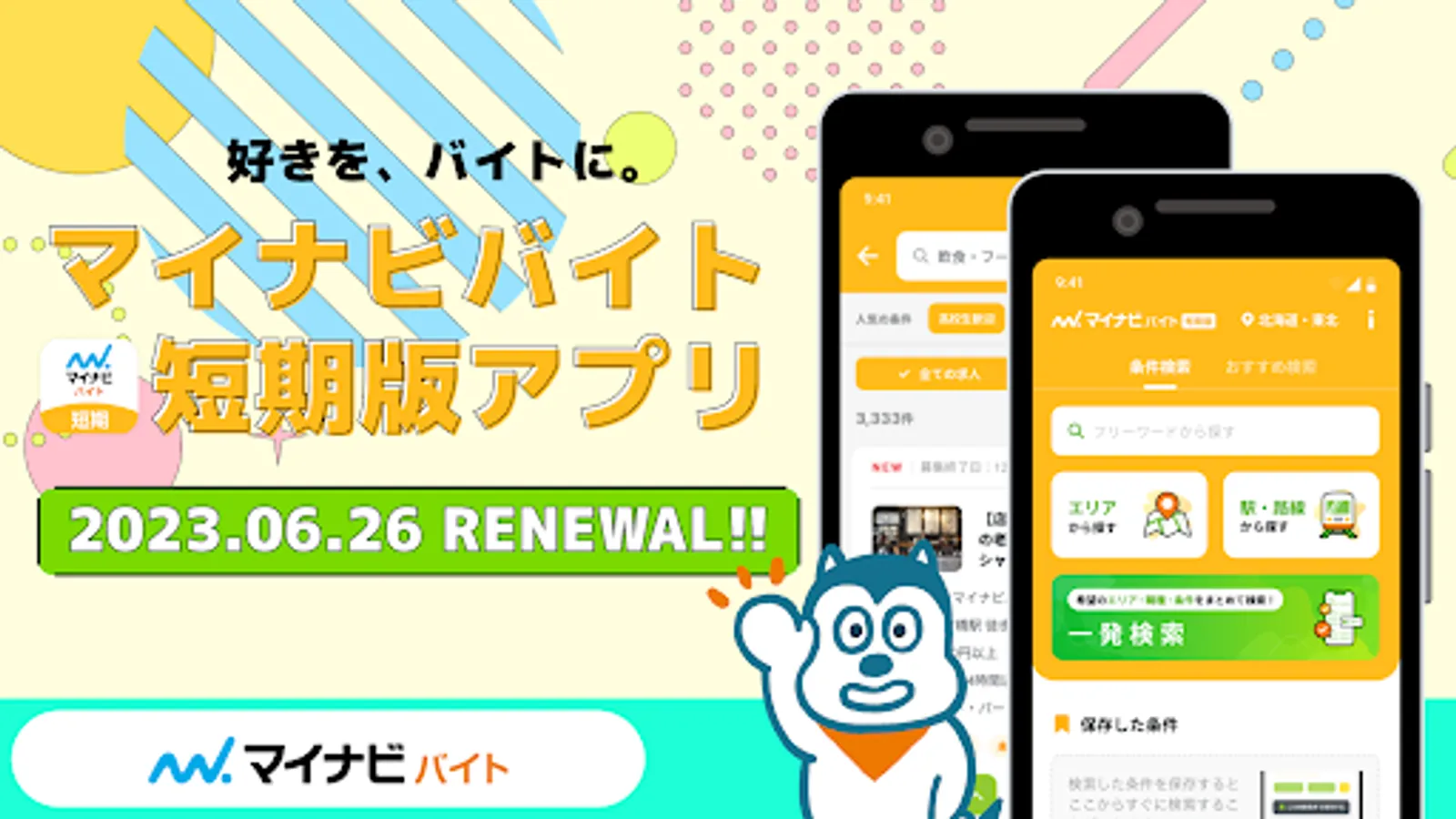 My Navi Byte Short-Term/One-Time Version is a part-time job search application that allows you to search only for short-term and one-time part-time jobs. Full of part-time job search functions unique to a part-time job search app that specializes in short-term and one-off part-time jobs!