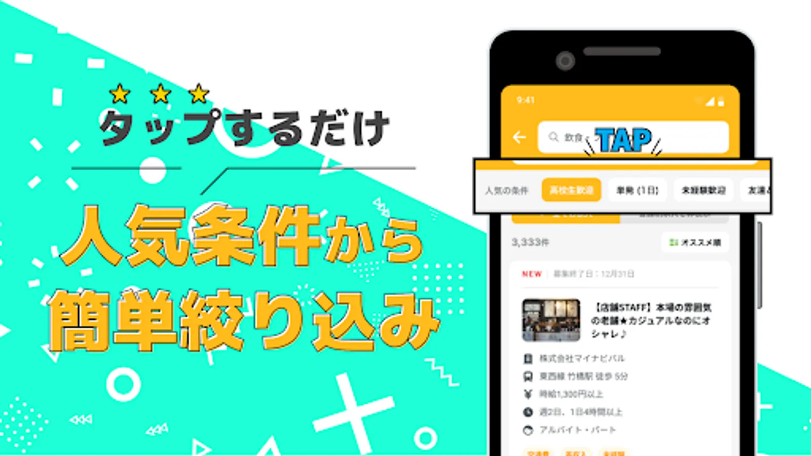 My Navi Baito short-term and one-time version offers a lot of jobs and part-time jobs with conditions that allow you to work in your spare time