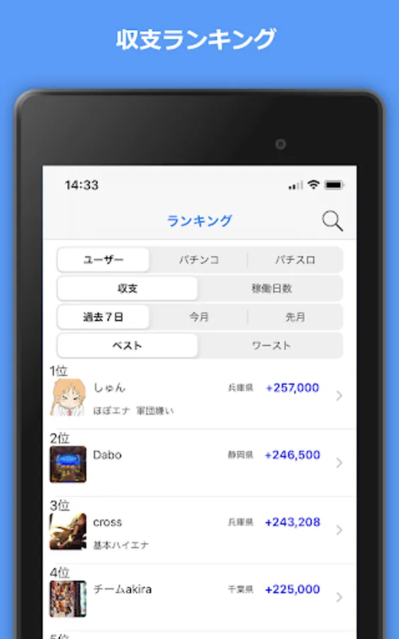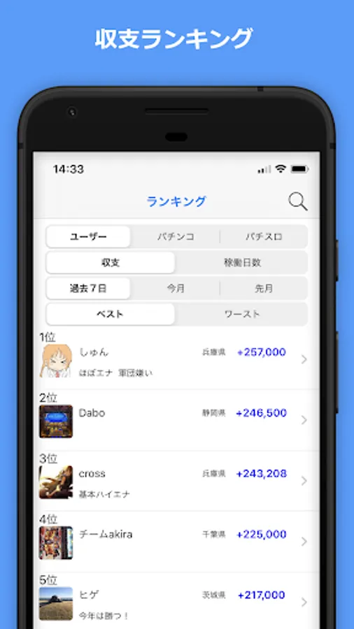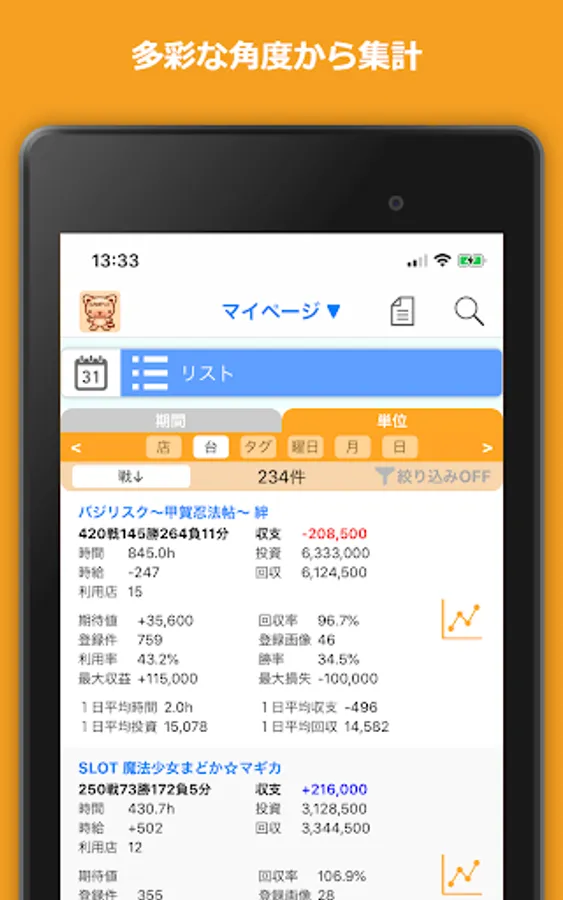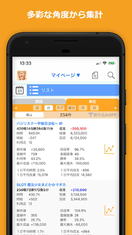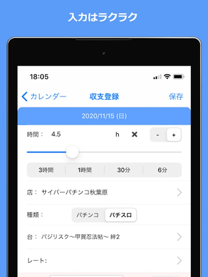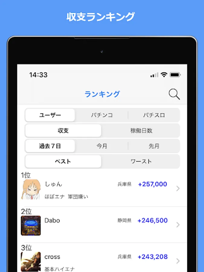 It is a tool that allows you to easily manage the balance of pachinko and pachinko. Let's aim to increase the winning percentage by making full use of not only your own data but also the data of users all over the country.