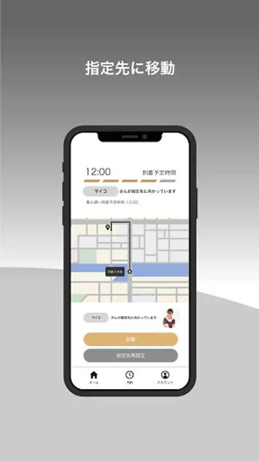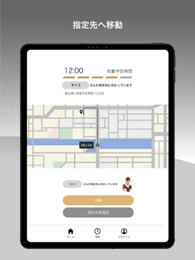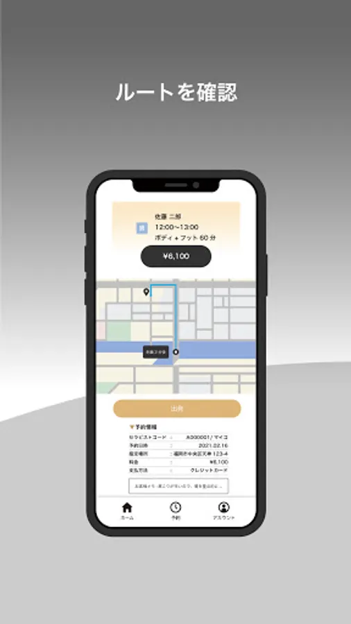 When a reservation is made, confirm the user's home or specified destination, reservation details, and tap Departure to start route guidance on the map.