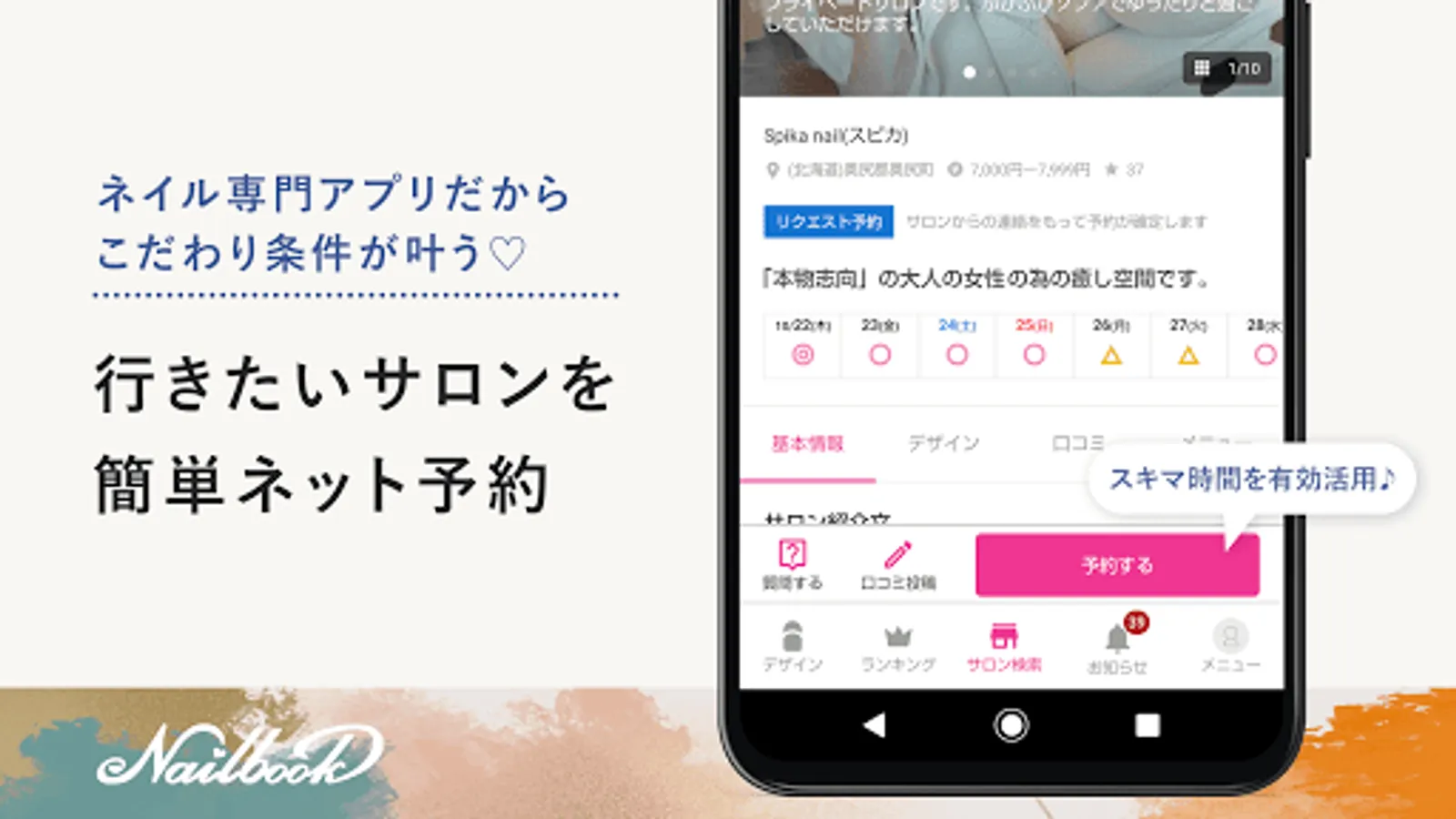 Nailbook is a popular nail application (free) with over 2 million downloads. You can find the best nail designs you want to make a reservation for nail salons in Japan!