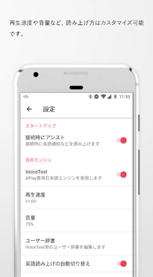Since the read aloud "APlay" in the voice of the notice that arrived in the smartphone, without opening the smartphone, listen to the message from the important people, you can quickly reply.