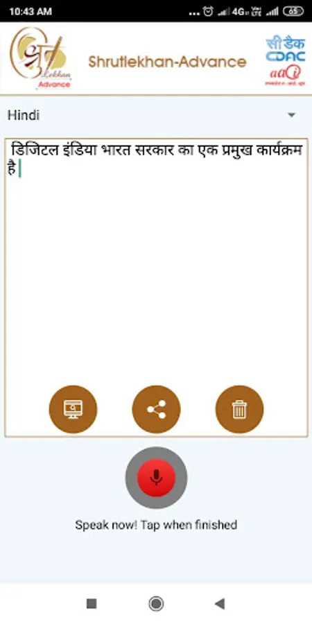 Shrutlekhan-Advance is a general purpose large vocabulary continuous automatic speech recognition system for Hindi and Marathi languages. It transcribes the spoken words into text. The app can recognize and convert any speaker voice without prior training. Shrutlekhan-Advance is a fully hybrid approach based software that uses AI, machine learning and deep neural network technology.
