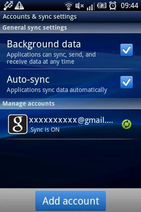 I omitted checking Auto-sync Settings, because I don’t want GET_ACCOUNTS permission.