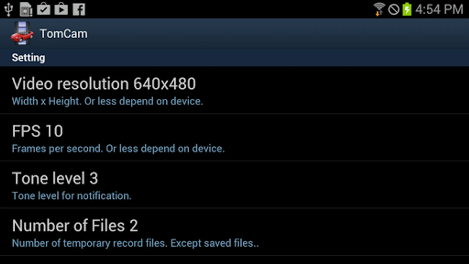 You can change settings, resolution, FPS (frames per second), duration of a file, and limit number of temporary files, etc.