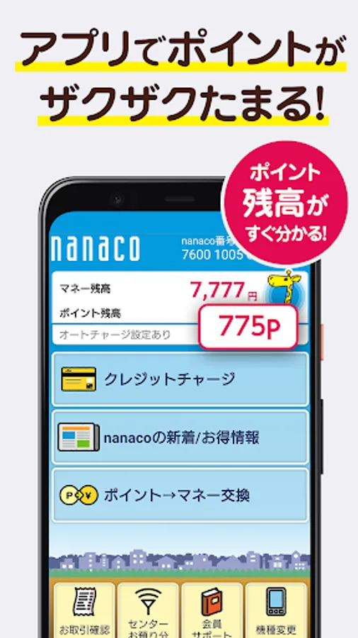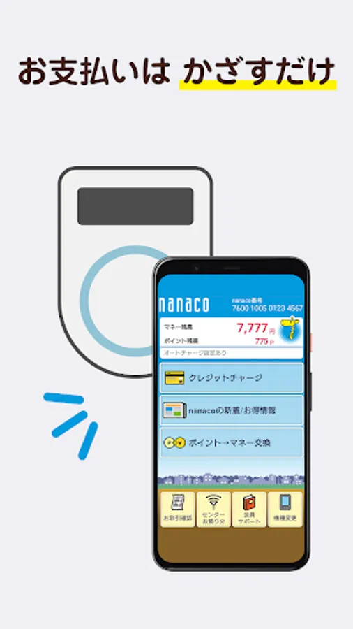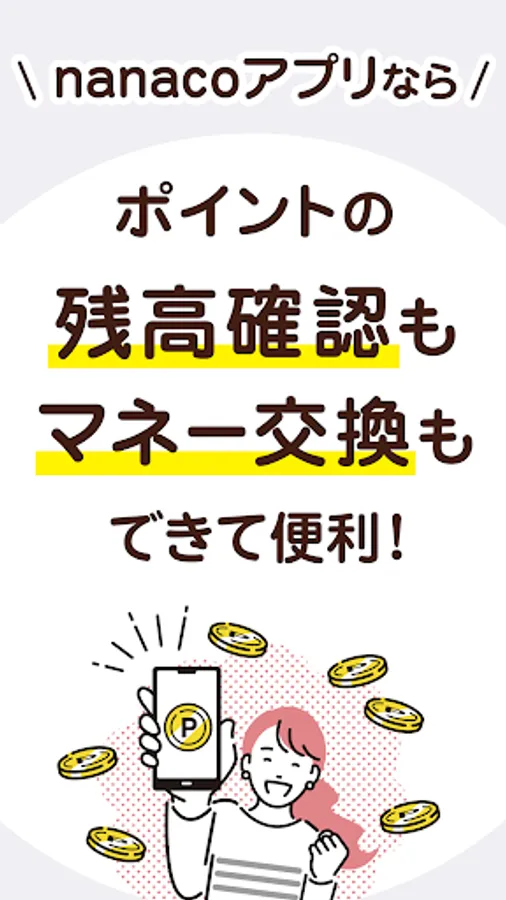 Download the nanaco mobile app to your Osaifu-Keitai! You can easily shop and check your balance with just your smartphone. You can also exchange points for money on the spot!