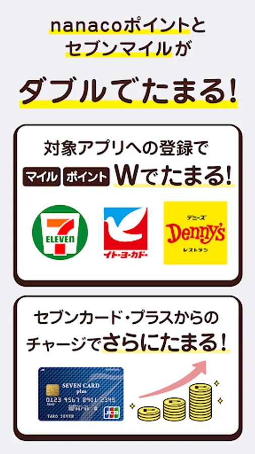 ●If you register the nanaco mobile app with a 7-Eleven, Ito-Yokado, etc. app and make a payment, you will earn double nanaco points and 7 miles!