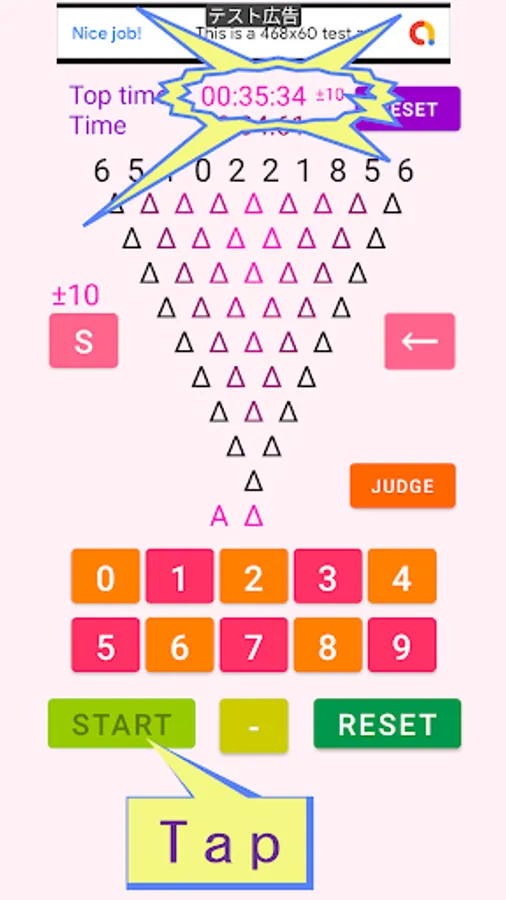 It is a game that competes for the time to arrange one digit number by addition two numbers arranged by inverted triangle calculation.